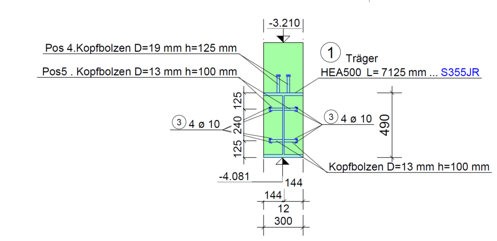 Verbundträgern in F90 um Biegebegrenzungen zu reduzieren.